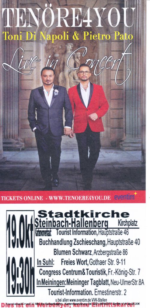 Sonntag, 19. Oktober um 19.30 Uhr in der Stadtkirche Steinbach-Hallenberg.