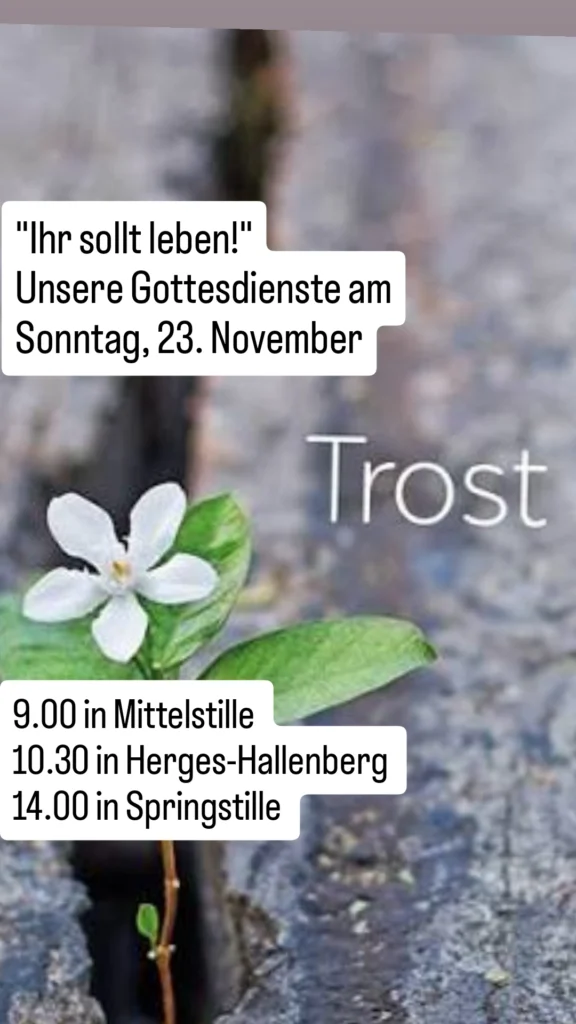 Posaunenchor und Lobpreischor in Herges-Hallenberg, Kindergottesdienst in Bermbach, Kindertreffs in Springstille und Mittelstille, Konfi-Unterricht, Bibeltreff bei Wein und Snacks, Frauentreffs in Breitenbach, Springstille und Herges, 3-Minuten-Predigten als Videos aufs Handy und vieles mehr. Infos bei Pfarrer Uwe.