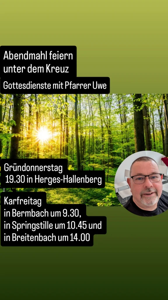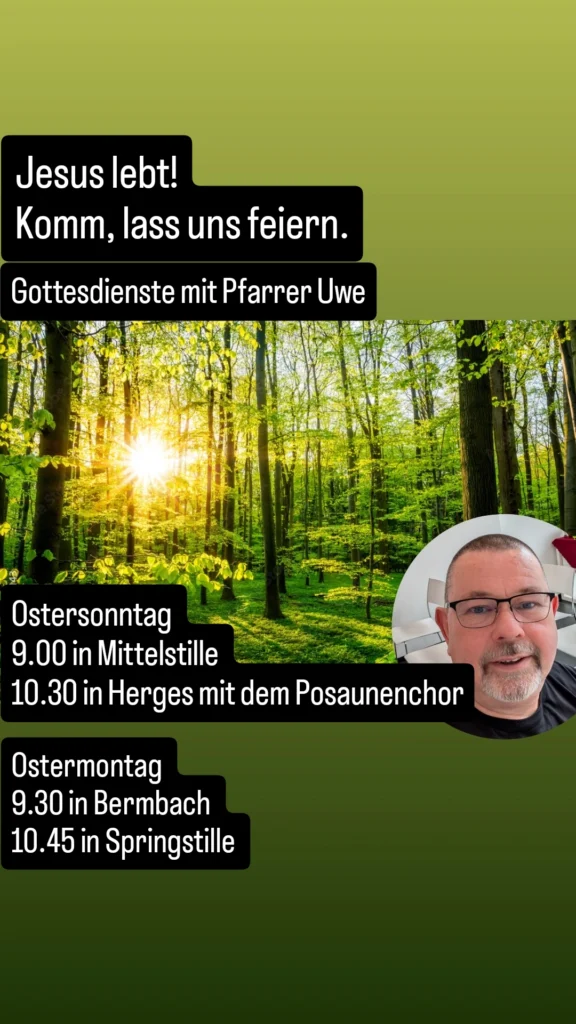 Posaunenchor und Lobpreischor in Herges-Hallenberg, Kindergottesdienst in Bermbach, Kindertreffs in Springstille und Mittelstille, Konfi-Unterricht, Bibeltreff bei Wein und Snacks, Frauentreffs in Breitenbach, Springstille und Herges, 3-Minuten-Predigten als Videos aufs Handy und vieles mehr. Infos bei Pfarrer Uwe.